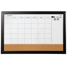 Quartet Magnetic Combination Calendar Board, 17" x 23", Dry-Erase & Cork, 1-Month Design, Black and Silver Frame